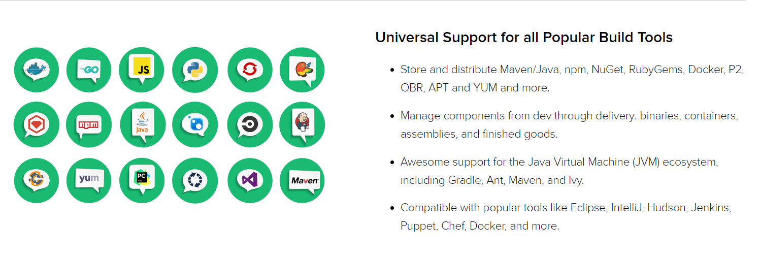 包存储仓库的免费工具,可以用来存储jar, docker, npm等软件包,也可以存储其他文件格式,不依赖mysql等,下载包可直接运行。支持的列表见下图