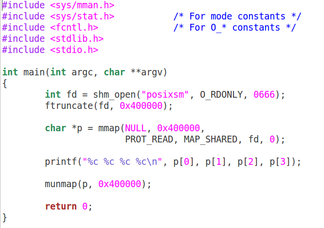 当然,如果你不喜欢shm_open()这个API,你也可以用常规的open来打开文件,然后进行mmap。关键的是mmap,wikipedia如是说:
