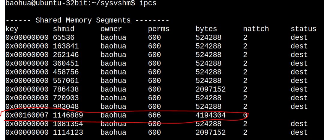 也可以通过ipcs找到新创建的SYS V共享内存: