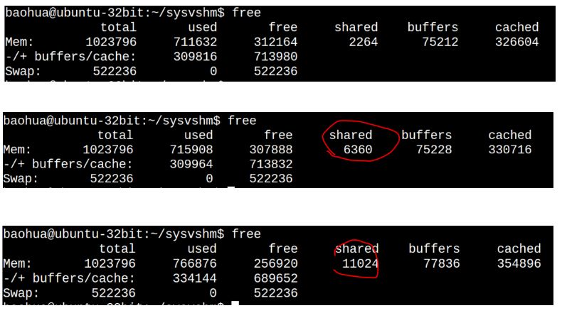 第3次比第2次的cached大了这么多?是因为我编写这篇文章边在访问磁盘里面的文件,当然POSIX的这个共享内存本身也导致cached增大了。