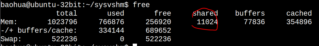 POSIX的共享内存,仍然符合我们前面说的tmpfs的特点,在运行了sw,sr后,再运行psw和psr,我们发现free命令再次戏剧性变化: