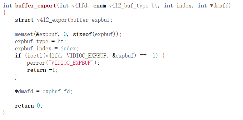 int ioctl(int fd, VIDIOC_EXPBUF, struct v4l2_exportbuffer *argp);