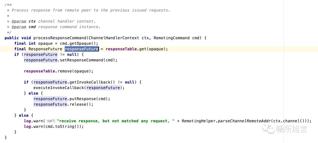 processResponseCommand 这个方法的名字来看,我们便知道他是处理我们服务端到客户端的返回数据的方法