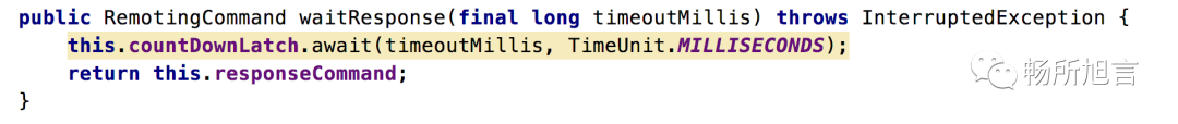 告诉我们这个需要有另外的线程或者其他流程需要 countDownLatch.countDown() 方法进行一个释放操作,当然也可以超时我们暂时先忽略.