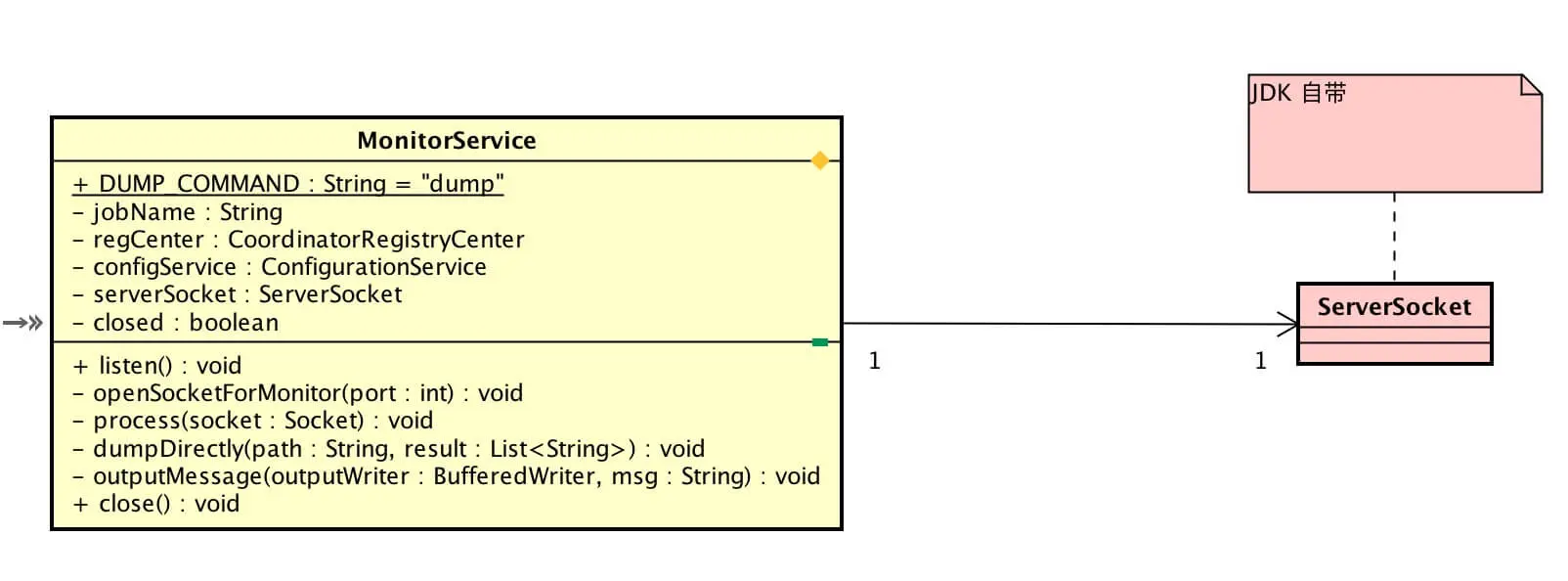 - 在 Elastic-Job-lite 里,作业监控服务( MonitorService ) 实现了DUMP作业运行信息功能。