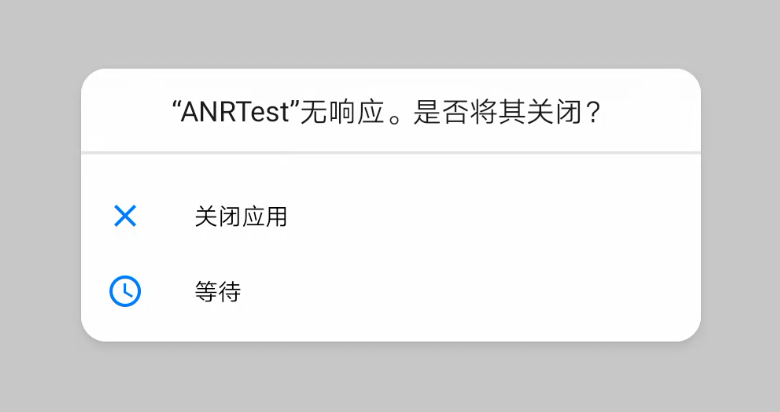 Android 系统对于一些事件需要在一定的时间范围内完成,如果超过预定时间能未能得到有效响应或者响应时间过长,都会造成 ANR。一般情况下,ANR 后会弹出一个提示框,告知用户当前应用无响应,用户可选择继续等待或者关闭应用。
