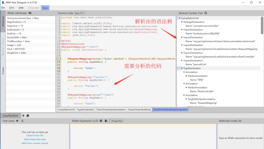 来验证一下表达式是否正确,将它丢到PMD图形界面XPATH Expression框中: