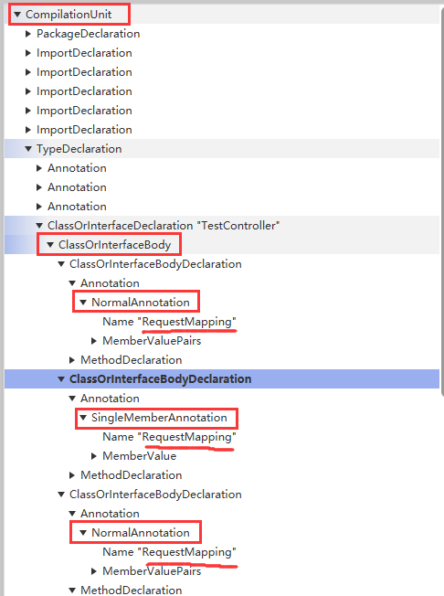 注意,由于写法不同,被分为了NormalAnnotation及SingleMemberAnnotation,为了后续处理XPath可以这么写: