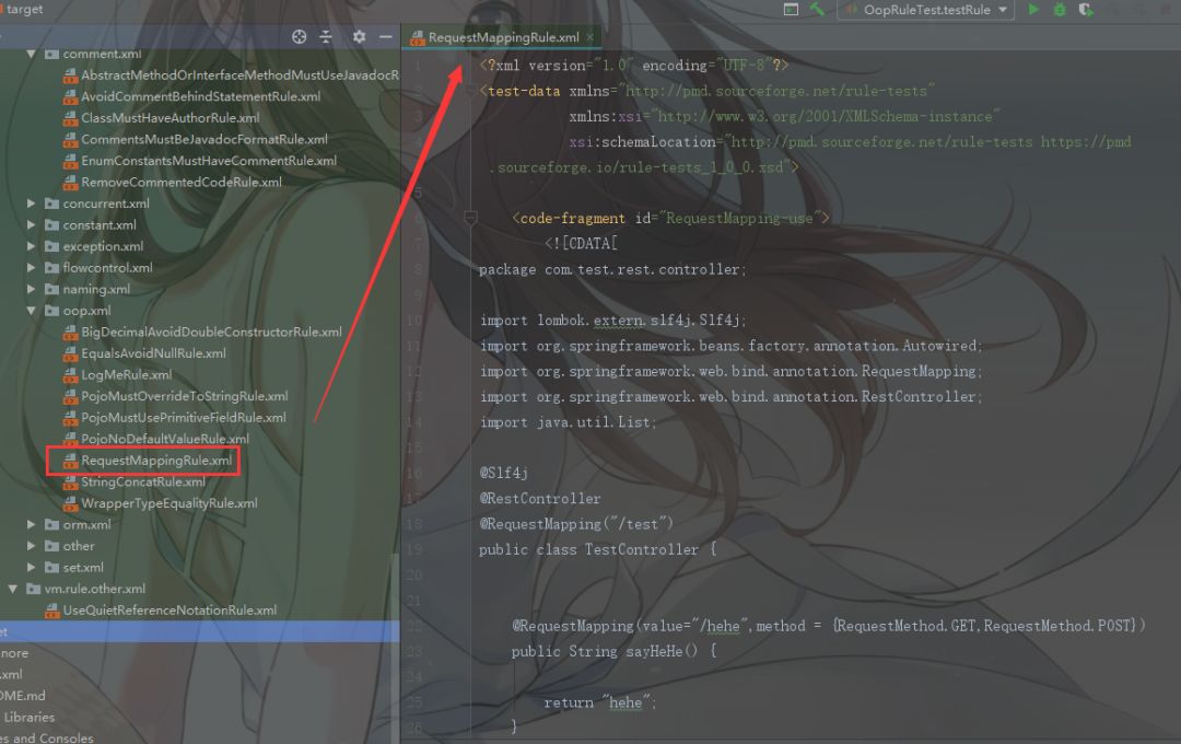 1<rule name="RequestMappingRule" 2 language="java" 3 message="java.oop.RequestMappingRule.rule.msg" 4 class="com.alibaba.p3c.pmd.lang.java.rule.oop.RequestMappingRule"> 5 <description>java.oop.StringConcatRule.rule.msg.desc</description> 6 <!--级别,1强制,2推荐,3参考--> 7 <priority>2</priority> 8 <example> 9 <![CDATA[10 Negative example:11 @RequestMapping("/heihei")12 @RequestMapping(value="/haha")13 ]]>14 </example>15 <example>16 <![CDATA[17 Positive example:18 @RequestMapping(value="/hehe",method = {RequestMethod.GET,RequestMethod.POST})19 ]]>20 </example>21 </rule>