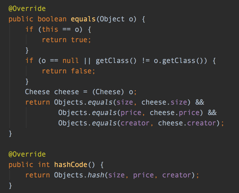如果没有覆写父类方法,下面的程序 cheese 值虽相同,但 put 奶酪后无法 get 到,奶酪被动了!