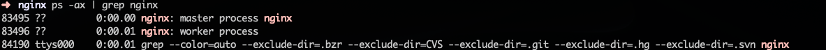 ps -ax | grep nginx查看所有运行的nginx进程,