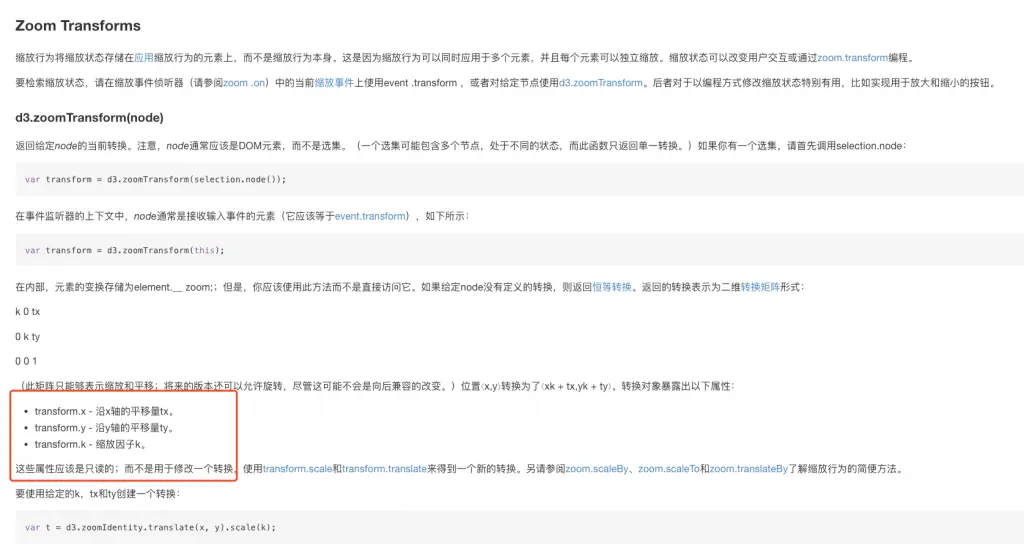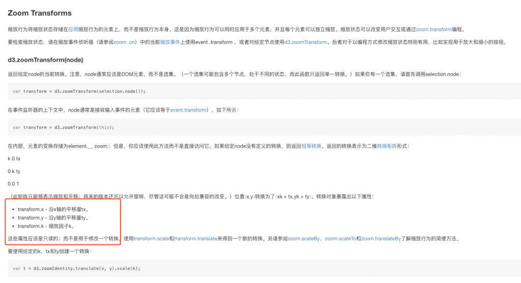 g.call(this.zoomMap.transform, d3.zoomIdentity.translate(width, height).scale(k));但是这里又遇到了一个坑,图层是搜索完平移了,但是再进行别的操作的时候,图层又回归到初始状态,我上d3的官网上查看,发现是zoomed方法里d3.event.tranform在作祟,而且无法直接修改这个值!