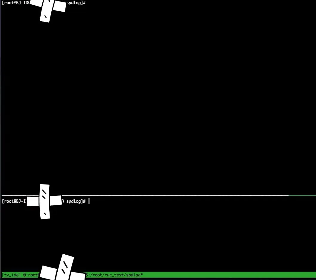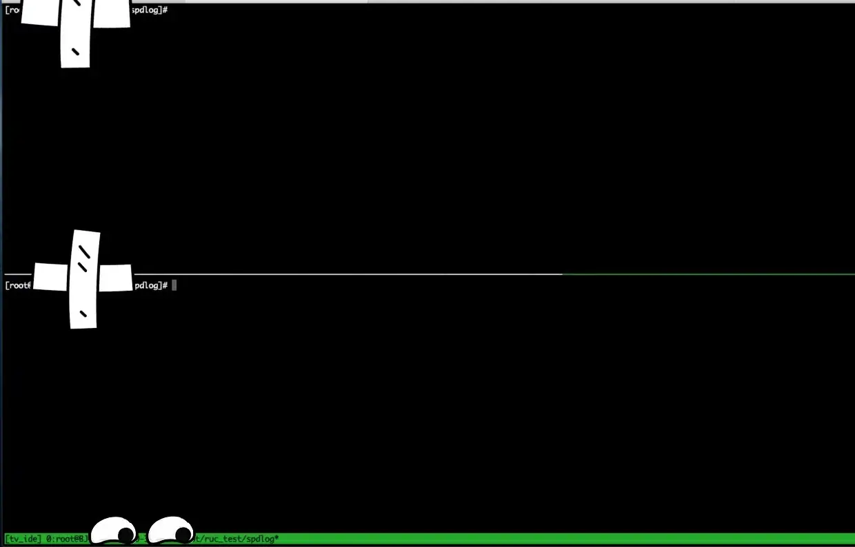 接着跳转到上面的分屏,使用ctrl + b + ↑,再次分屏(纵向),使用ctrl + b + %命令,调整右侧(左侧也可,看个人习惯)屏大小即可,这样我们的TV IDE就完成了!
