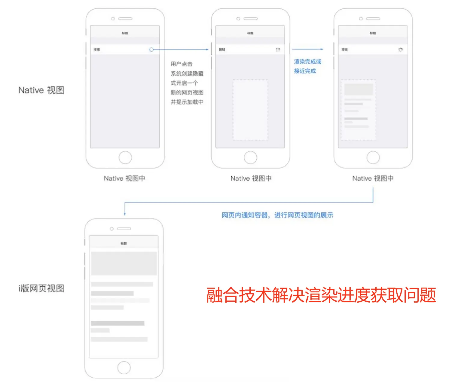 页面白屏问题,无法做到原生页面在切换时候的流畅度。白屏问题的本质原因在于原生页面切换到Web页面时候,Web页面这时候还未加载渲染完成,因此会导致白屏问题。解决方案就是在当前原生页面中通过一个不可见的webview将页面进行加载,当webview页面完全加载完成后通知原生页面然后进行跳转。