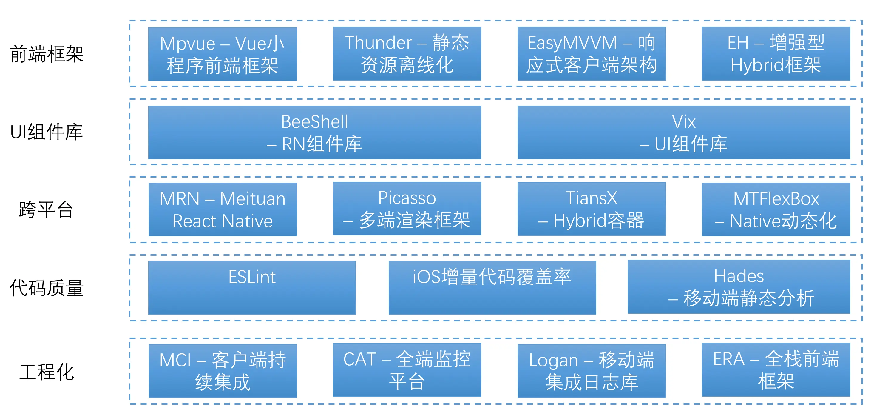 在上篇中,我已经介绍了美团点评的业务情况、大前端的技术体系,其中大前端的技术全景图如下: