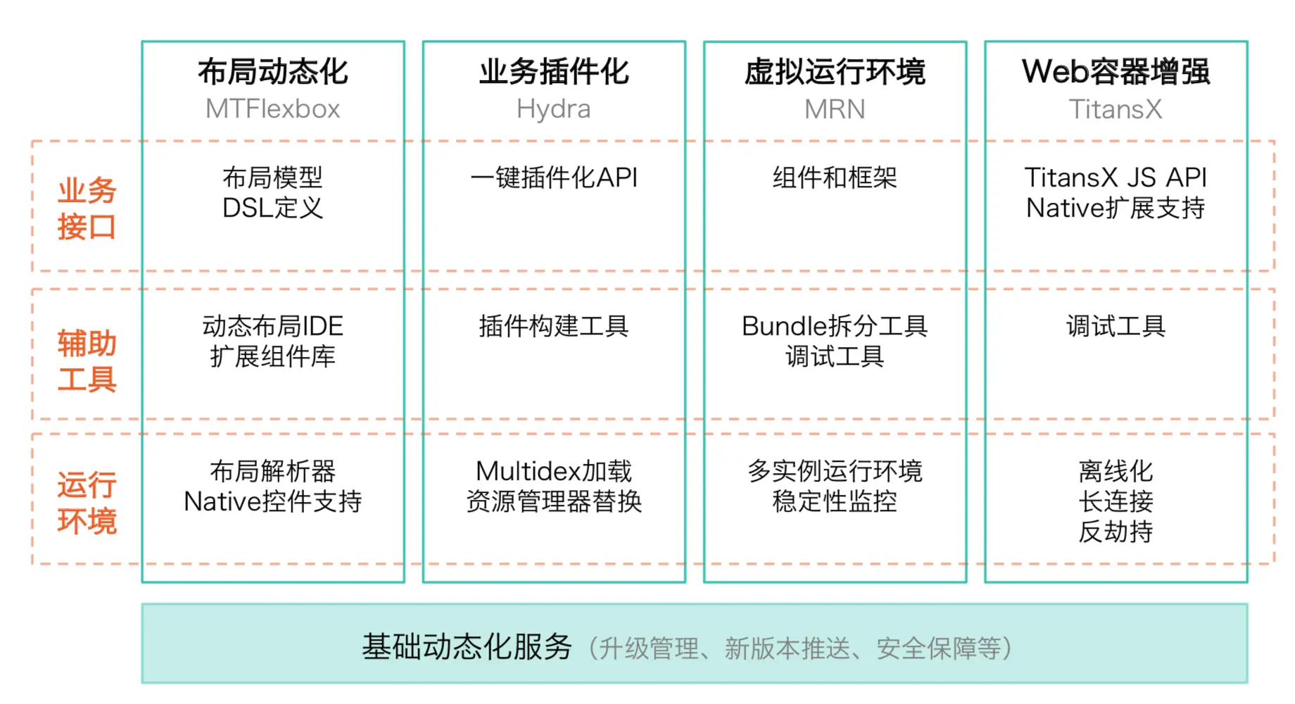 - 业务插件化:在Android系统中,通过特有的插件化能力,实现动态更新的能力,但是不能支持iOS,因此多用于Android系统中Hot fix。