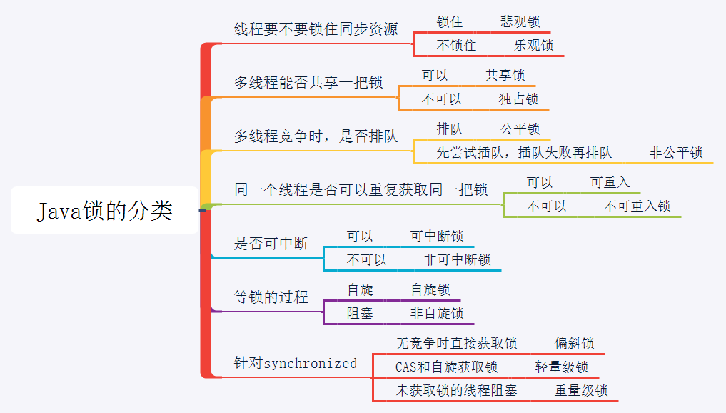 可以看出,通常我们把锁分为以下这些类别: