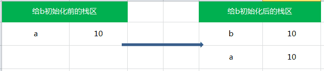 此时,a中保存的值为 10 ,当使用 a 来初始化 b 时,b 中保存的值也为10,但b中的10与a中的是完全独立的,该值只是a中的值的一个副本,此后,这两个变量可以参加任何操作而相互不受影响。