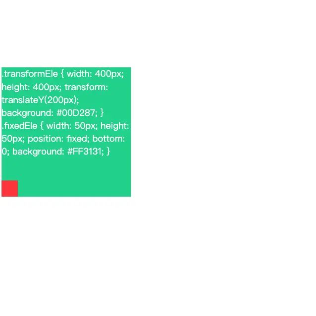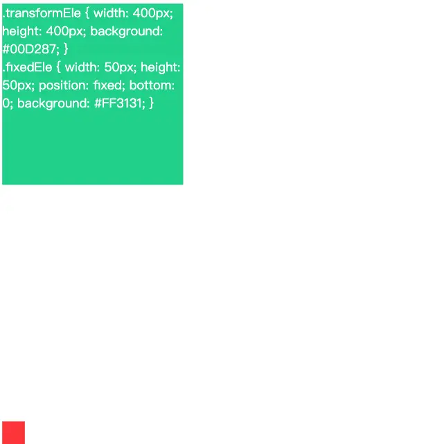 如果transformEle使用了transform,而fixedEle使用了position: fixed,那么position: fixed不会有固定在visual viewport上,实际结果相当于相对transformEle元素定位,就是fixed相对的不是visual viewport,而是transformELe, 产生这样的原因主要是因为transform和position: fixed使用了不同的坐标系统。