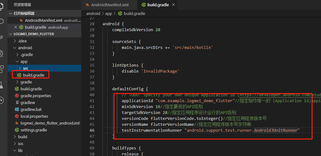 - 查看构建默认配置:/android/app/build.gradle