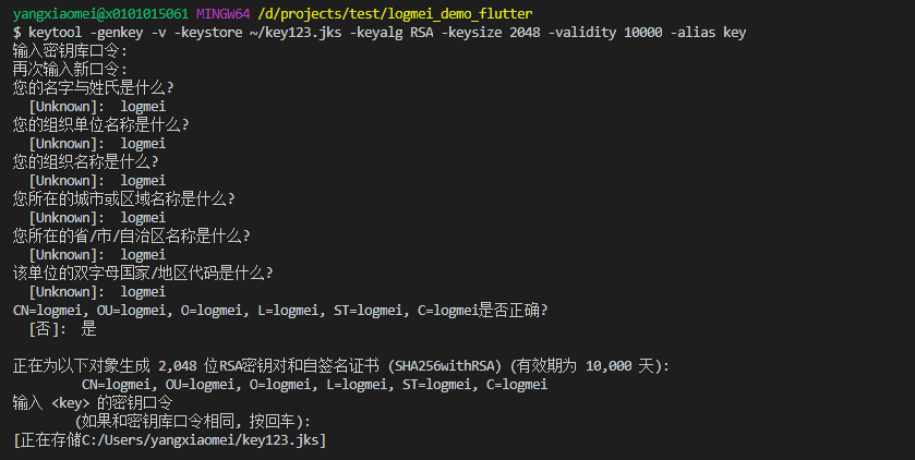 keytool -genkey -v -keystore ~/key.jks -keyalg RSA -keysize 2048 -validity 10000 -alias key