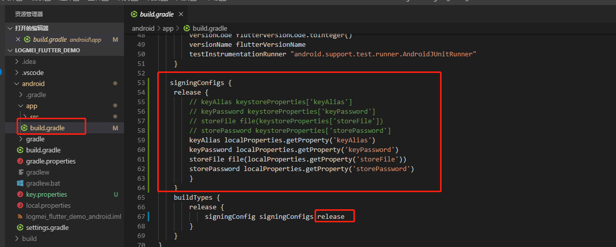 - 在gradle中配置签名:/android/app/build.gradle
