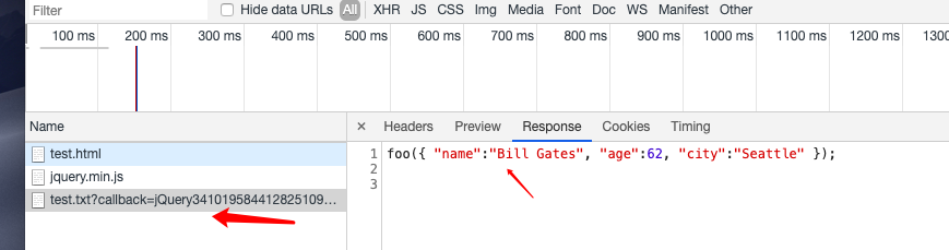 打开测试html页面,打开调试工具,然后点击test按钮,可以看到如下结果: