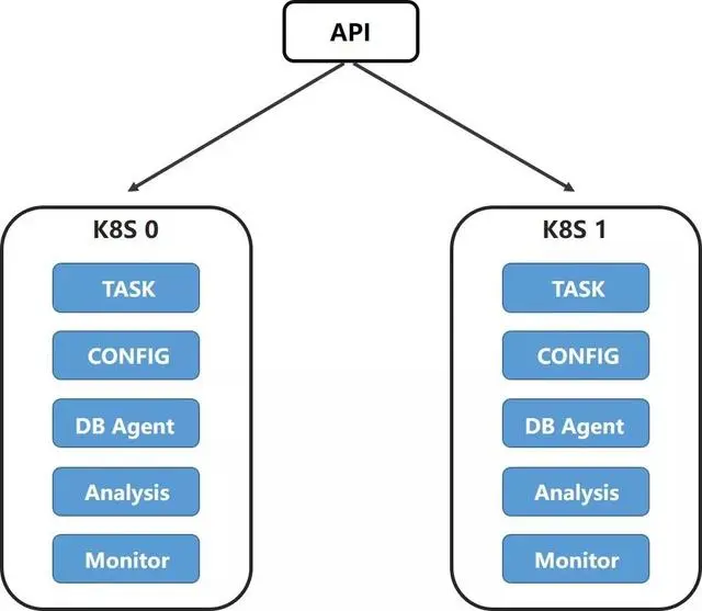 此外,控制层分别由 API、TASK、CONFIG、Monitor、DB 以及 Analysis 组成,各组件执行逻辑如下图:当 API 接收到数据转发请求时,便会下发至各个 UK8S 集群中。TASK 为主要逻辑执行者,CONFIG 则负责对转发面各个网元进行配置下发等操作,DB Agent 则负责保存需要持久化的数据,Analysis 对 Rome 核心网进行调度,保证用户流量能 Run 在最优路径上,最终由 Monitor 完成对各服务以及 Rome 核心网状态及质量的监控。