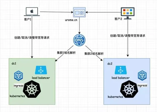 如上图,Rome 控制层采用 UK8S 同城双活架构,每个应用多副本对等部署在两个数据中心的 UK8S 集群,利用域名解析服务 DNS 将入口流量分别导入两个集群,有效预防并降低由于单个数据中心出口或单个副本故障造成的业务不可用,在集群 (数据中心) 和应用层面保证了业务的稳定性和高可用性。