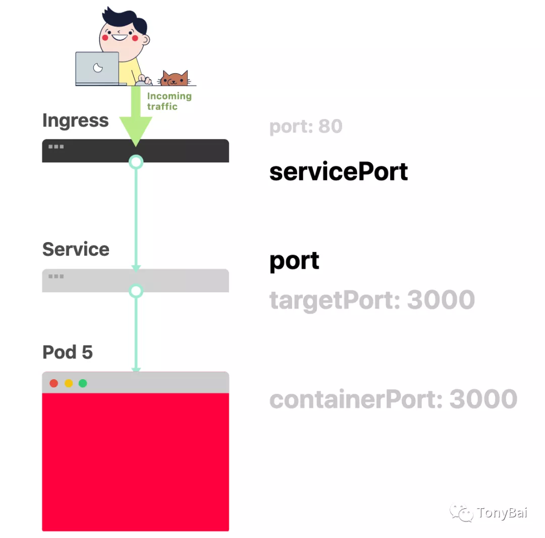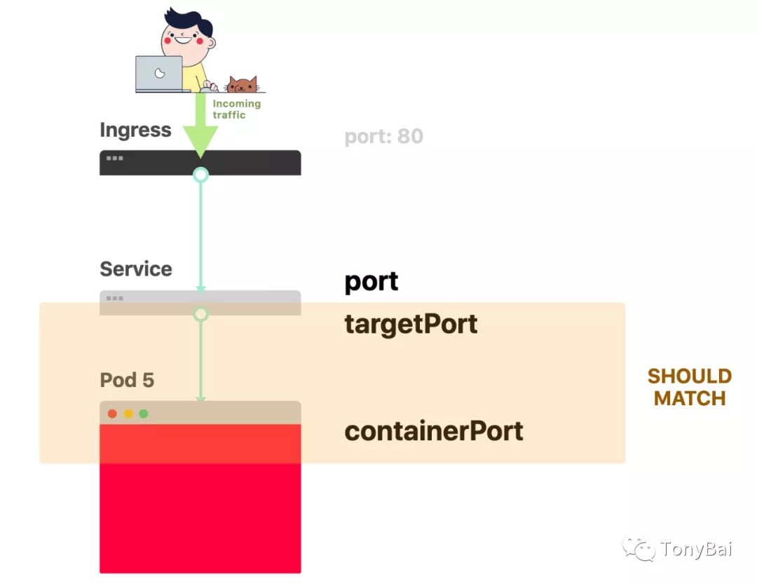当创建一个Service时,你可以定义port和targetPort,但是哪个用来连接容器呢?