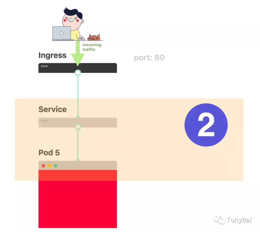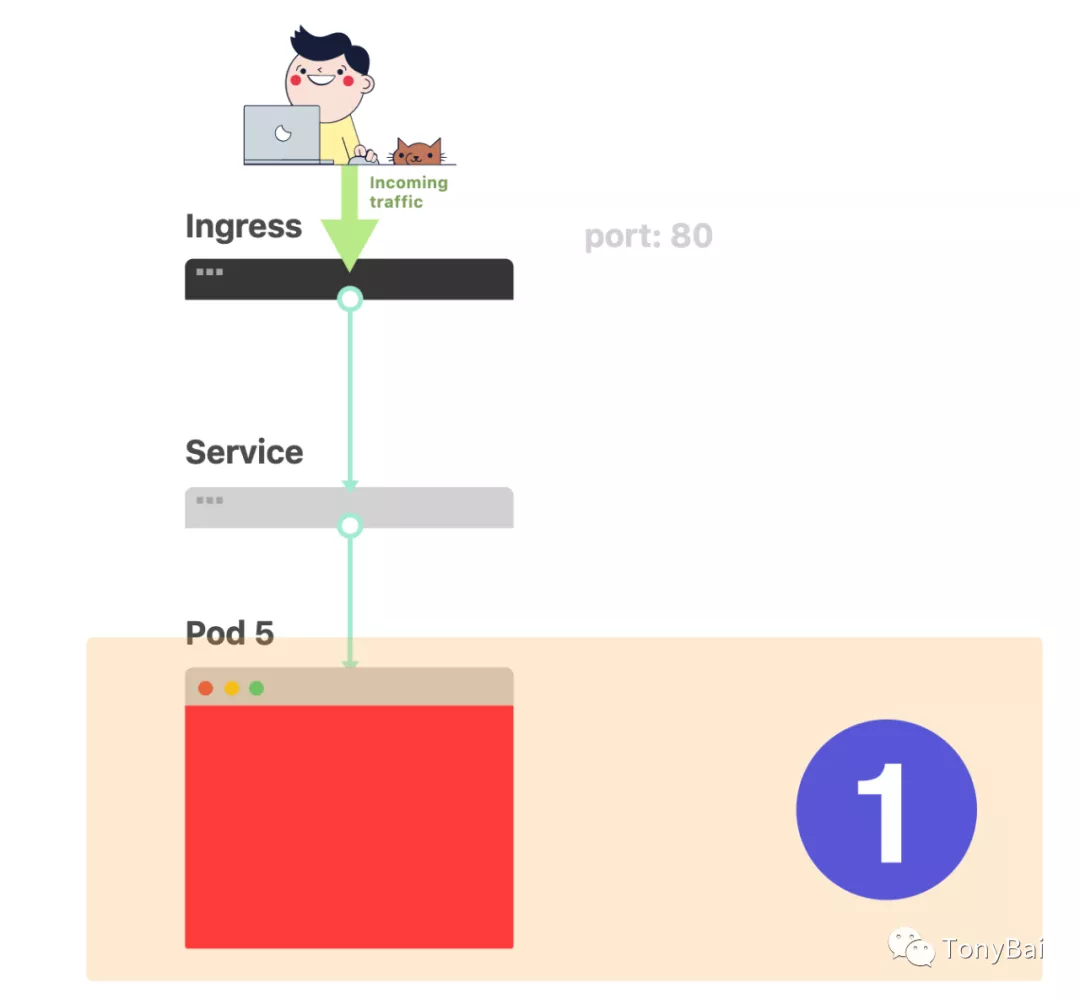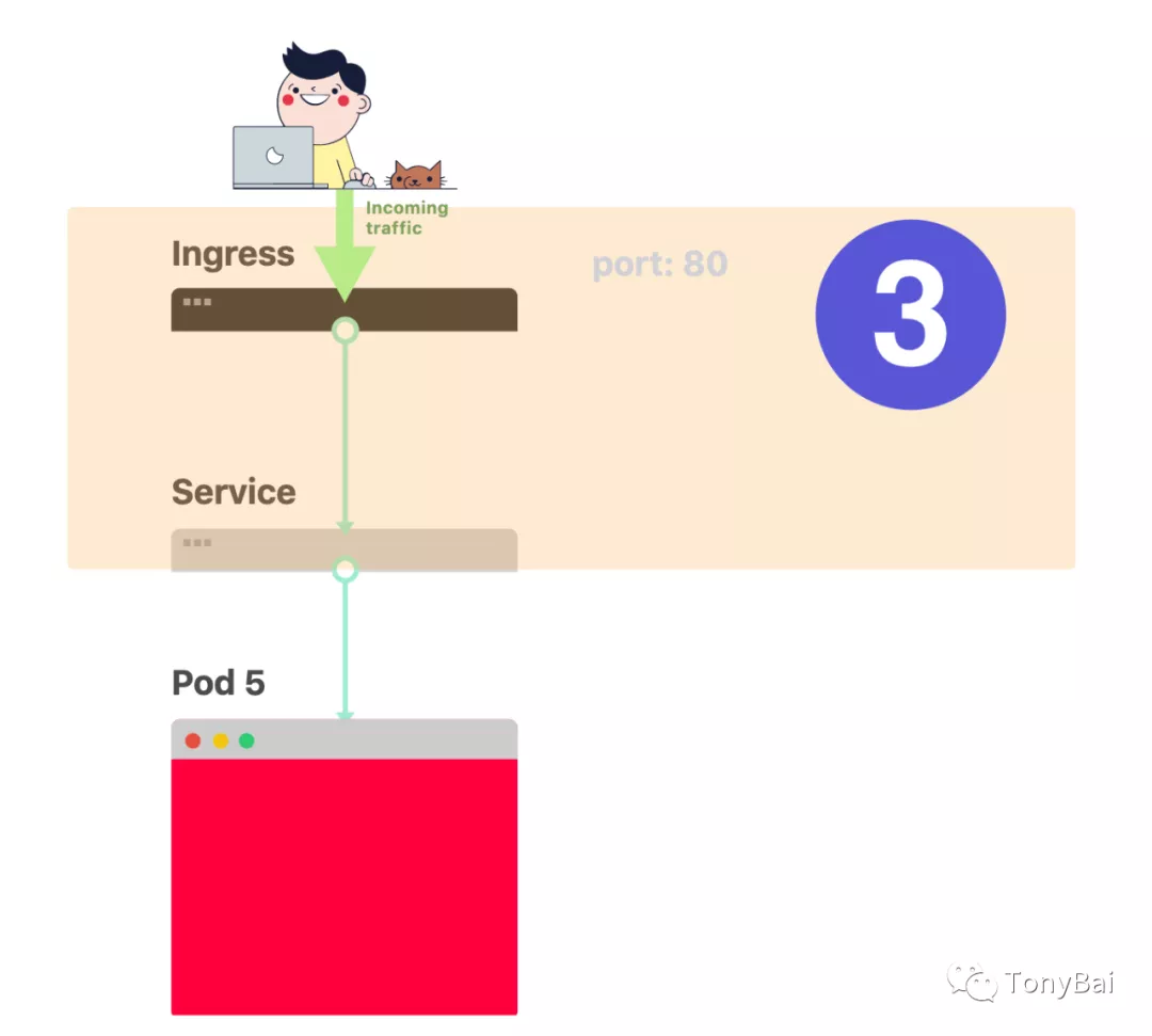 接下来是配置Ingress以将你的应用暴露到集群外部。Ingress必须知道如何检索服务,然后检索Pod并将流量路由给它们。Ingress按名字和暴露的端口检索正确的服务。