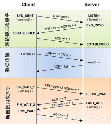 - client发送ack报文,ack = k + 1, 确认号Y+1,状态置为ESTABLISHED