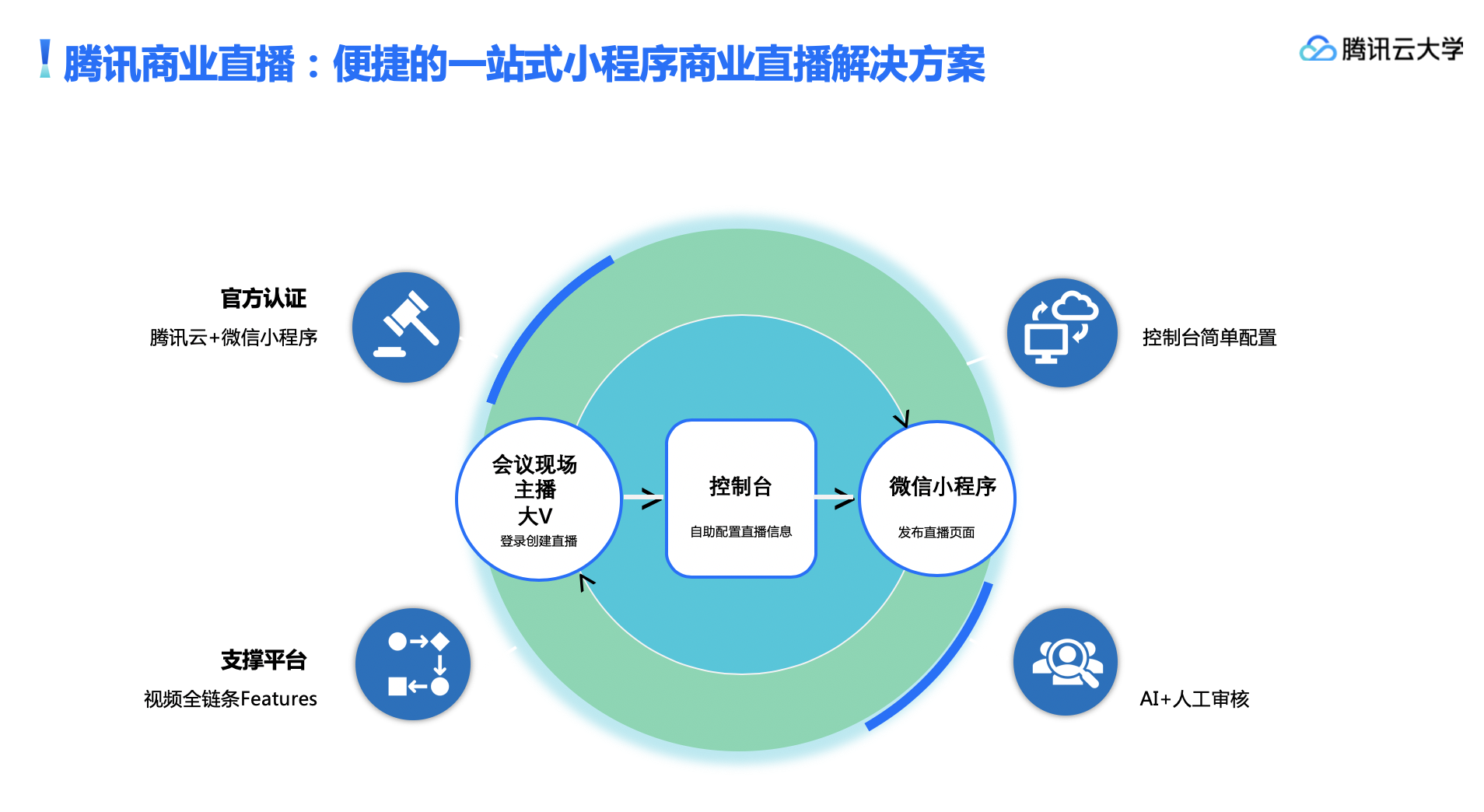 直播目前不仅仅是一种观看游戏大神秀操作和才艺主播展示自我的形式,还凭借其良好的实时互动体验和如临其境的沉浸感,成为了各大品牌举行大型会议或电商销售活动的“标配”。为了高效地完成商业直播,许多开发者和企业选择了SaaS的服务。「腾讯云大学」邀请腾讯云高级产品经理 董燚老师 分享关于“腾讯云直播SaaS方案”课程的内容。