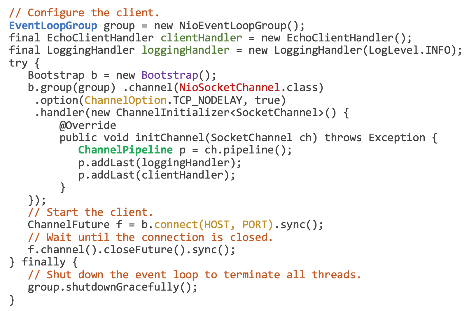 - 无状态的ChannelHandler可以使用单例,即多个channel共享一个,减少对象创建,如LoggingHandler,用@ChannelHandler.Sharable标记