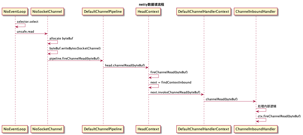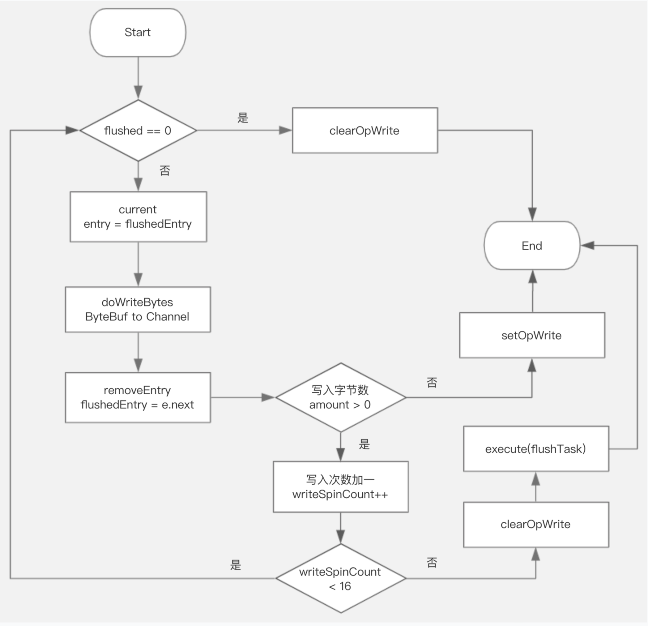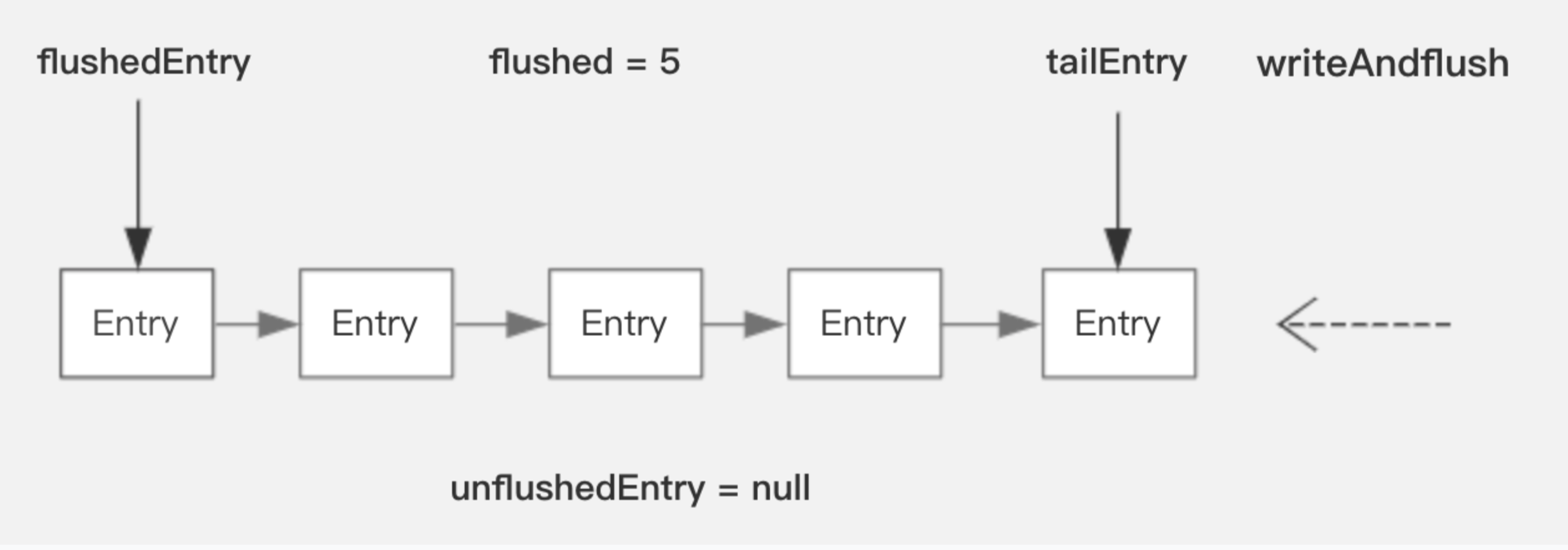- channelReadComplete 从通道读取数据完毕时调用,将缓冲区的数据写到通道上 ctx.flush