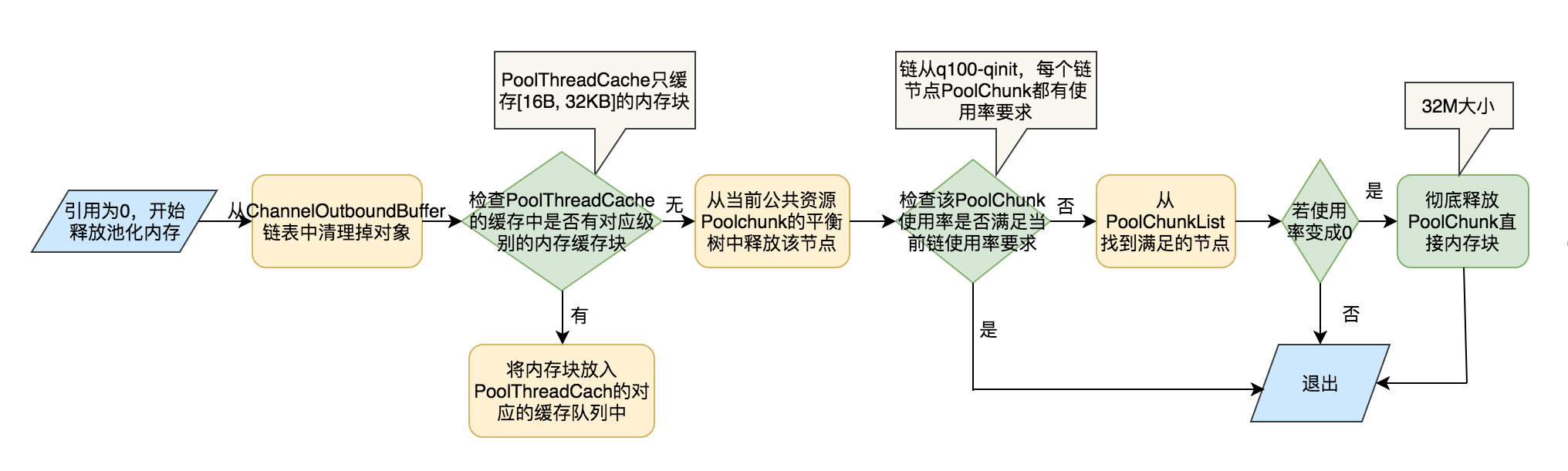 当PooledByteBuf引用计数减为0时,会触发调用deallocate