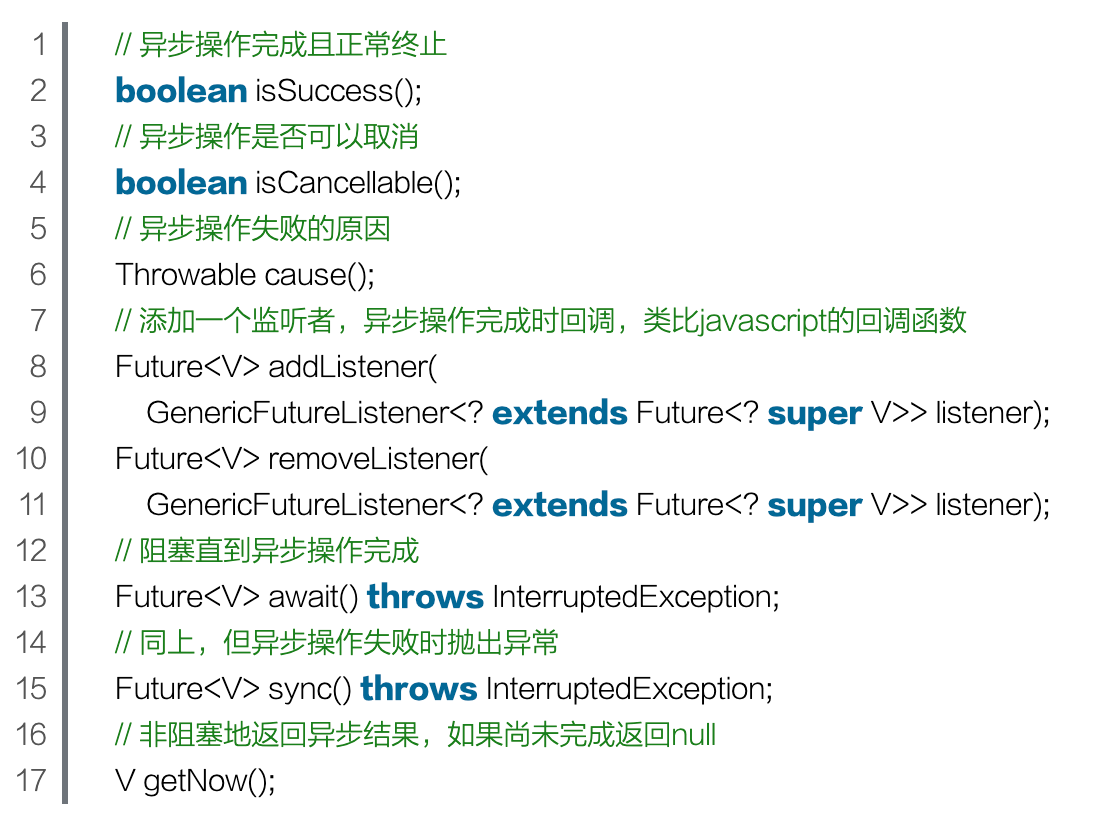 Netty 扩展了 JDK 的 Future 接口,扩展的方法如下: