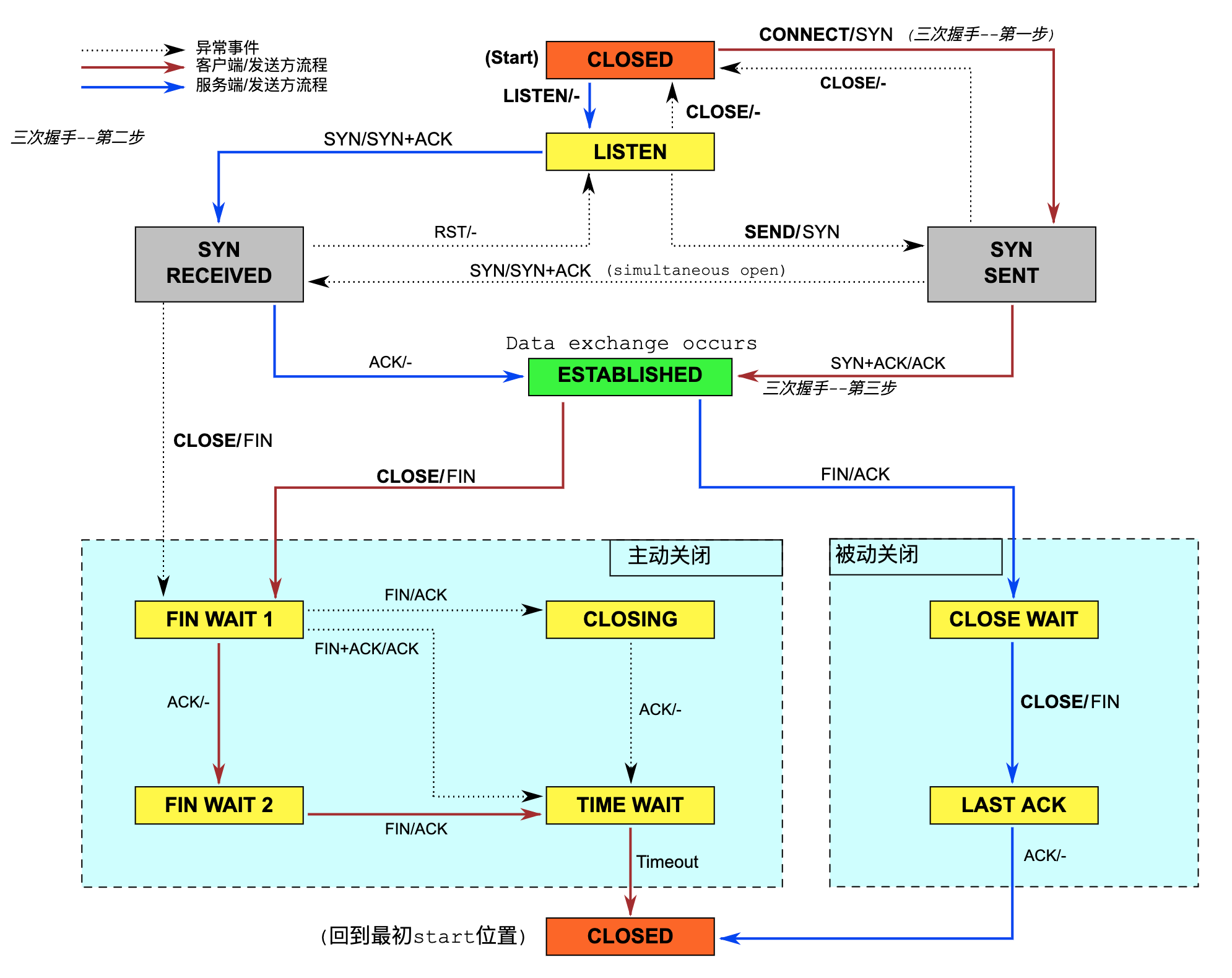 - exceptionCaught I/O异常或者Handler内部处理异常调用,关闭通道 ctx.close()