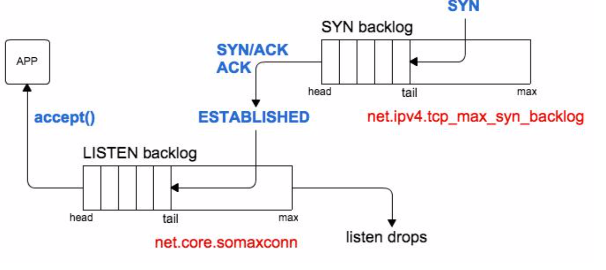 | net.core.somaxconn | listen backlog 队列的最大长度,默认128 | 262144 |