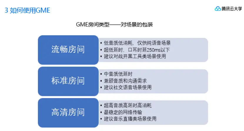 另外可以看到,GME默认提供的房间类型是内置能力的一个子集。本课程中所有的内容GME都是后台可控的,感谢观看。