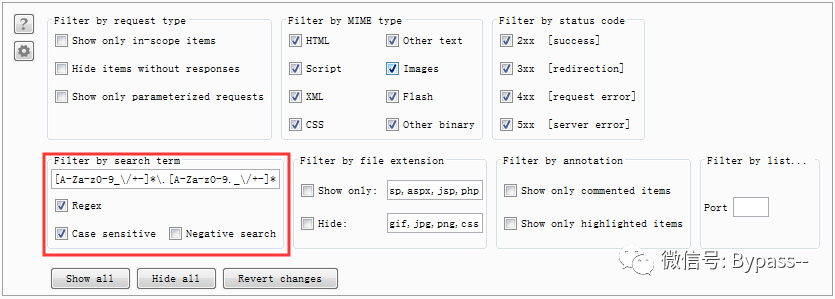 首先我们需要识别应用程序正在使用JWT,最简单的方法是在代理工具的历史记录中搜索JWT正则表达式: