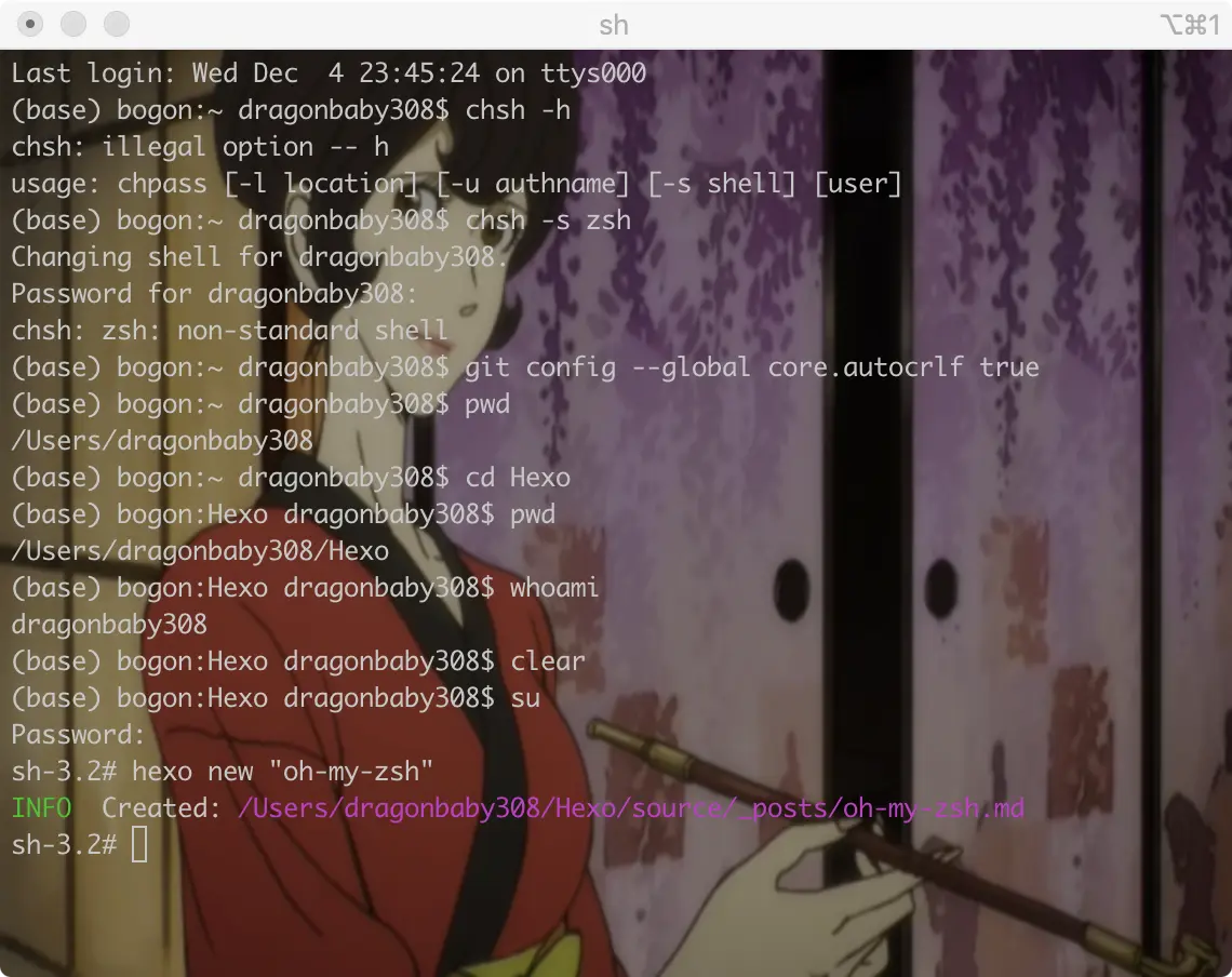 Mac默认使用dash作为终端,通过chsh -s /bin/zsh将默认终端修改为zsh- 安装