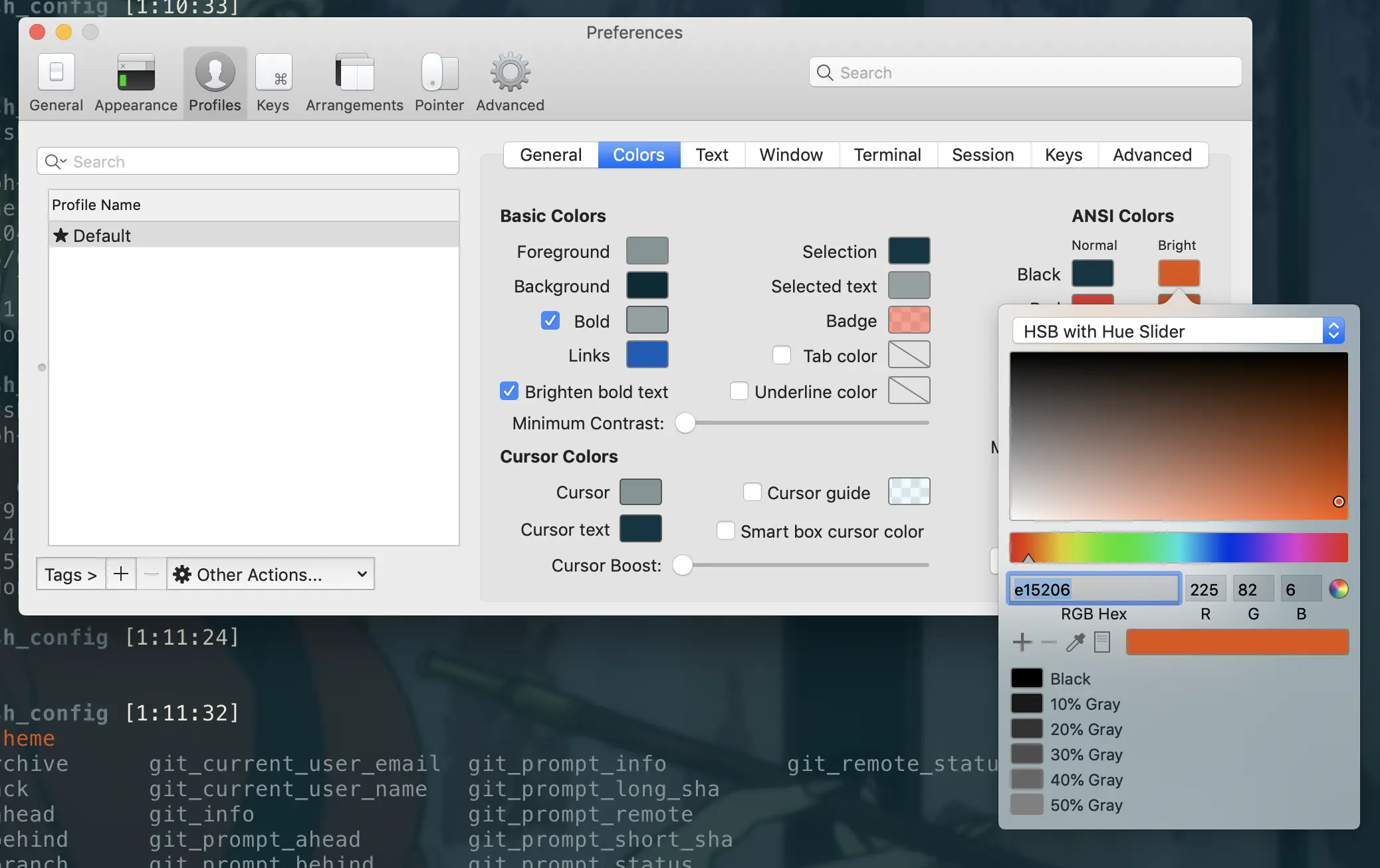 iTerm2 -> Preferences -> Profiles -> Colors -> Color Presets