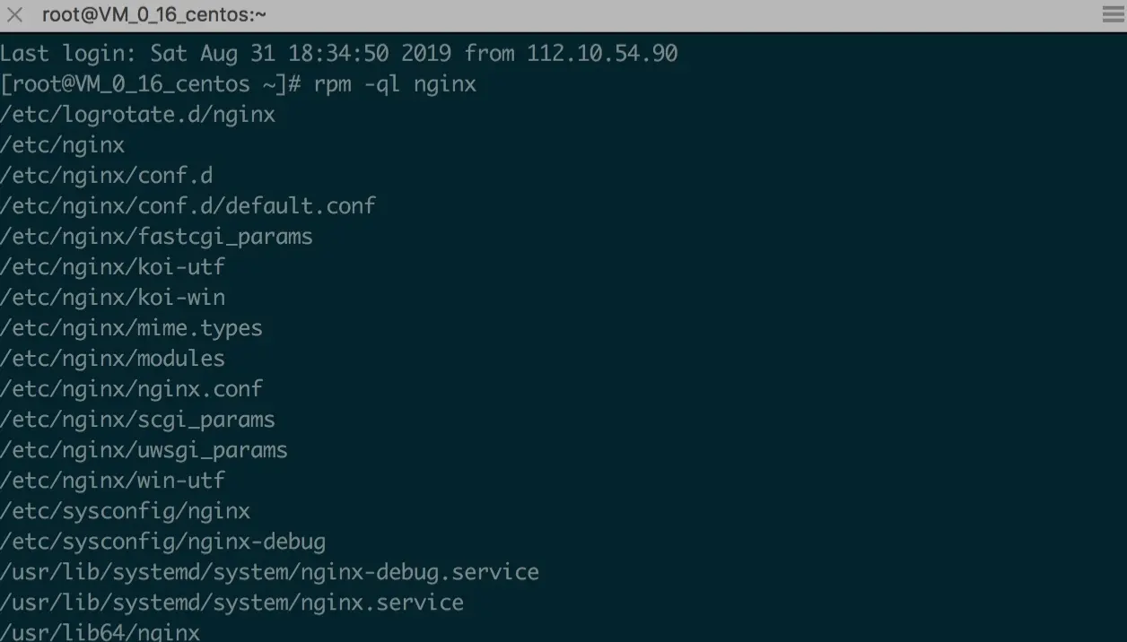 通过rpm -ql nginx 指令查看 Nginx 都安装到了哪些目录