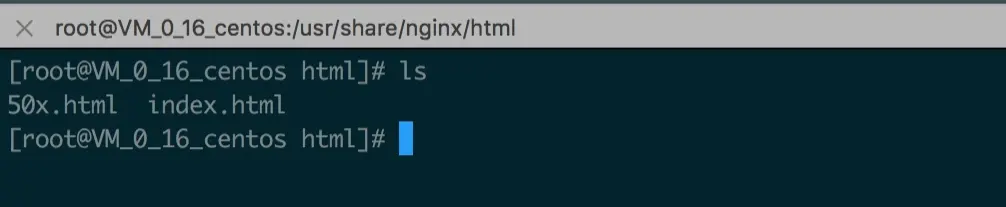 这里的root表示,项目文件是放在'/usr/share/nginx/html'下面,那么我们就去看看这里有啥呢
