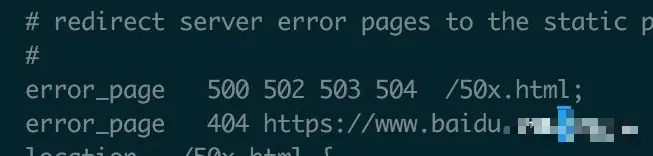error_page 500 502 503 504 /50x.html; #错误状态码的显示页面,配置后需要重启