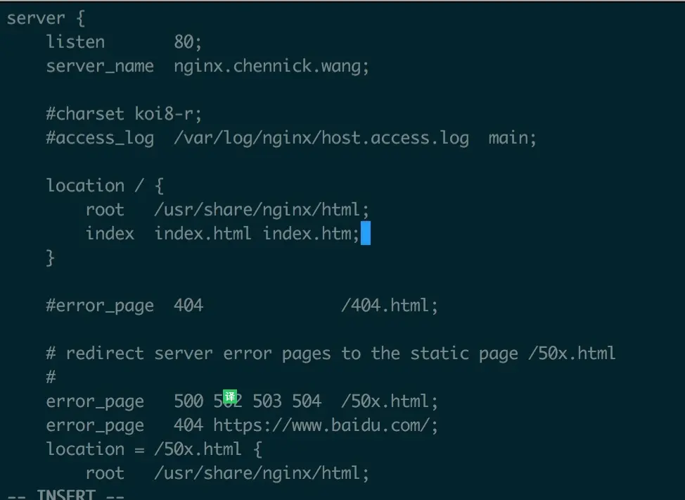 上述配置,在浏览器访问nginx2.chennick.wang这个域名的时候,展示的页面是www.baidu.com/的页面,如下图所示
