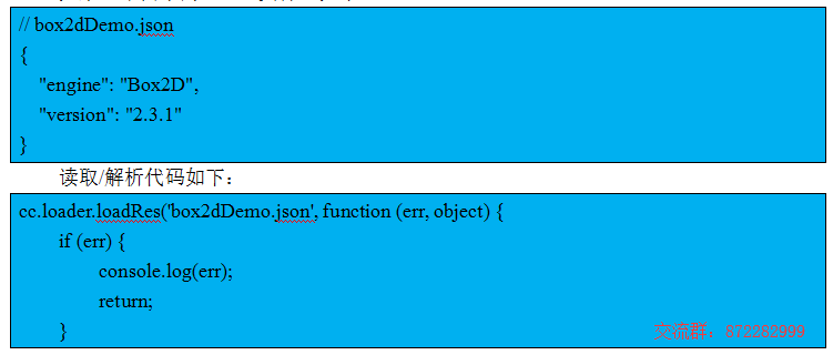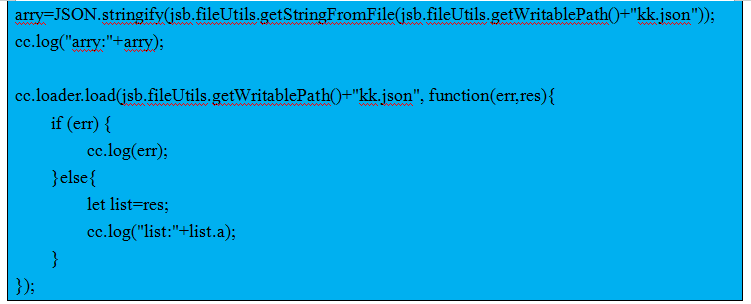 Cocos Creator提供了cc.load.loadRes来专门加载位于 resources 目录下的文件,所以提前把JSON文件放到 asserts/resources 目录下即可。