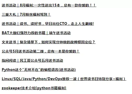 其实,公众号已经举行了很多次的读者赠书活动,部分文章或截图如下:
