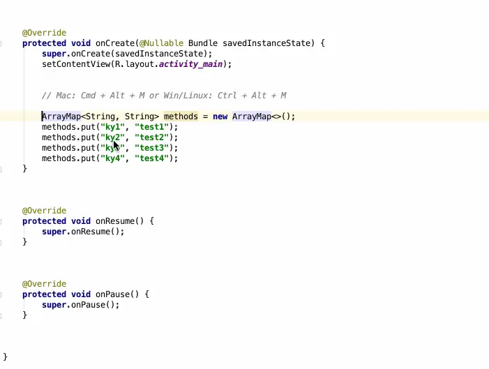 | 自动提取方法 | Mac: Cmd + Alt + M Win/Linux: Ctrl + Alt + M |